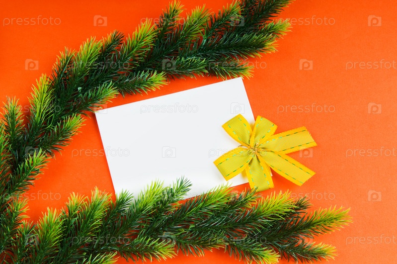 Чистый лист бумаги и еловые ветки