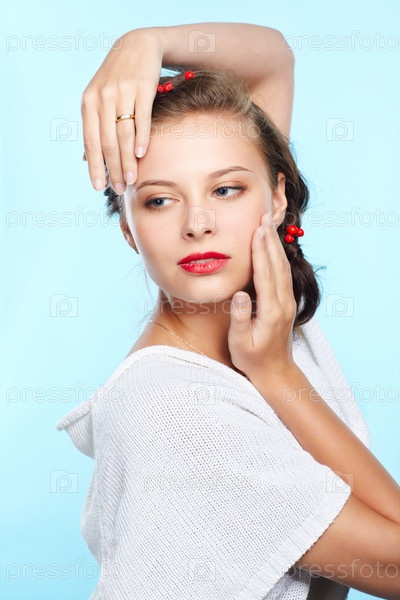 Портрет молодой брюнетки с ягодами красной рябины в волосах