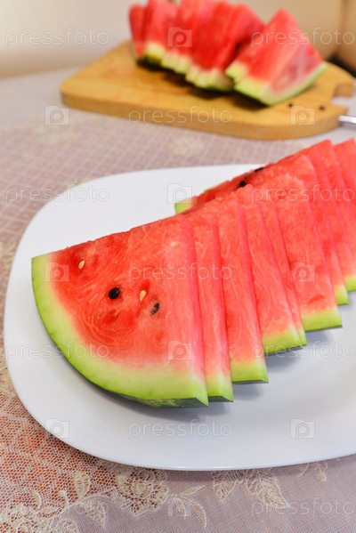 Кусочки арбуза на тарелке