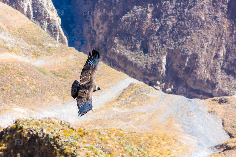 Кондор пролетел над каньоном Колка, Перу, Южная Америка. Этот Кондор больших летающих птиц на земле