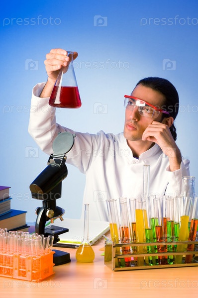 Химик в лаборатории экспериментируют с решениями