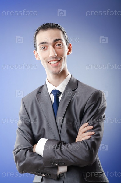 Молодой бизнесмен на голубом фоне