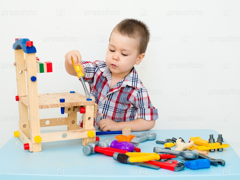 Прелестный ребенок играет с игрушками