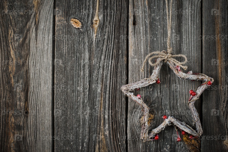 Новогоднее украшение над деревянными фоне