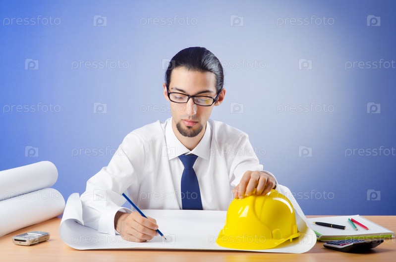 Молодой мужчина-инженер, занимающейся строительным проектом