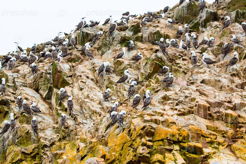 Огромное количество птиц на прибрежных скалах