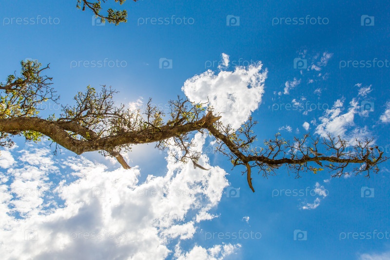 Старое одинокое дерево на фоне яркого голубого неба