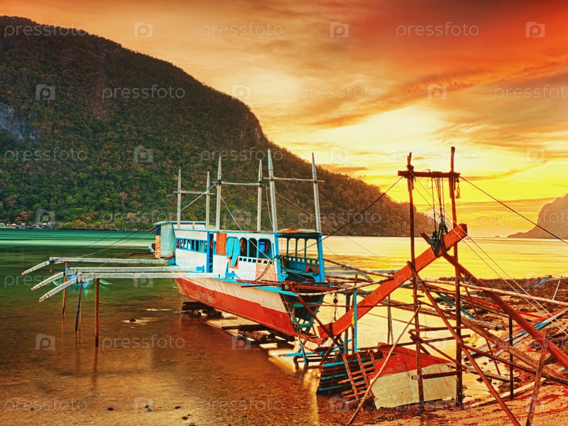 Лодка в доке во время заката. Эль Нидо. Палаван
