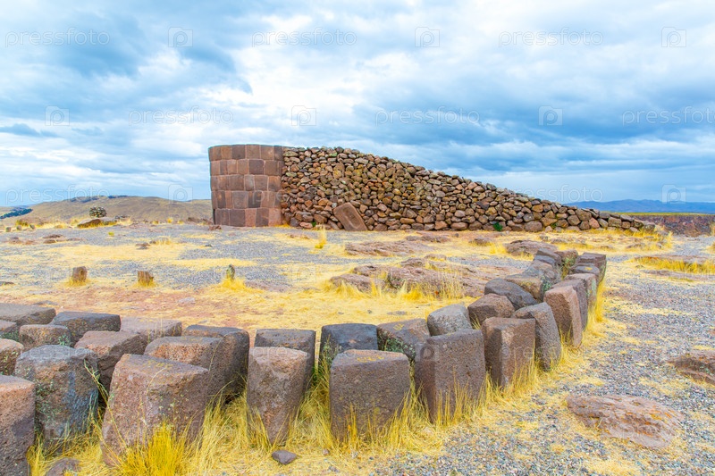 Погребальные башни и руины в Сильюстани, Перу, Южная Америка