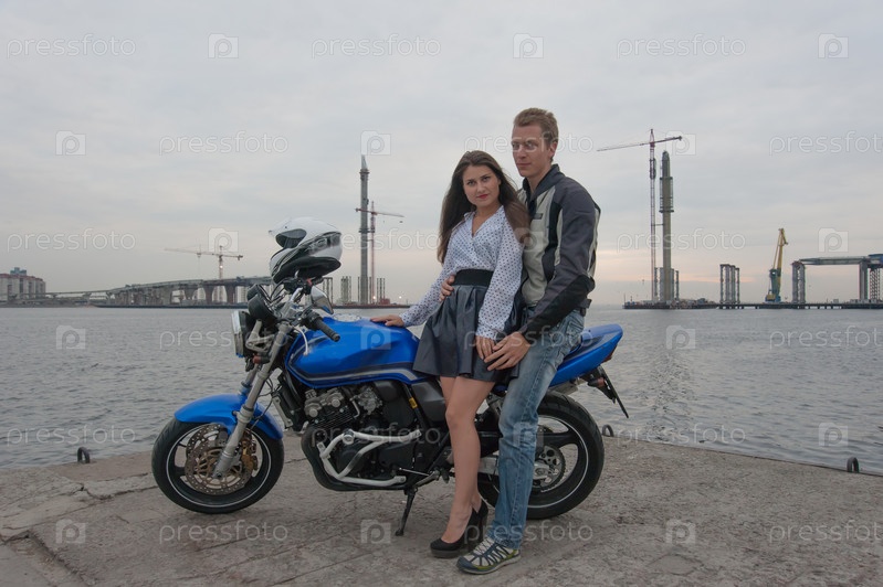 Молодая пара на мотоцикле
