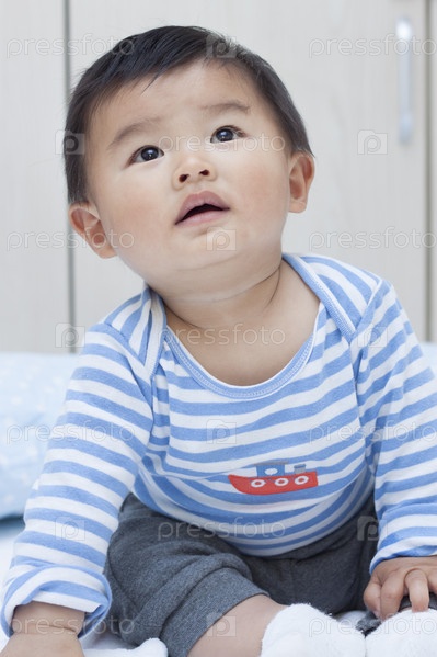 Симпатичные китайский мальчик в матросском костюме