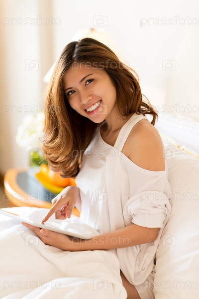 Счастливая девушка с планшетом