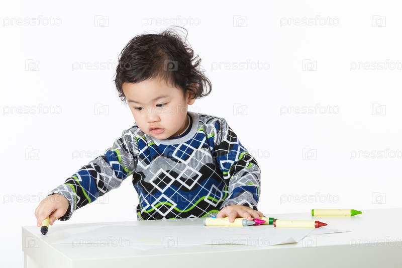 Маленький мальчик сосредоточен на чертеже