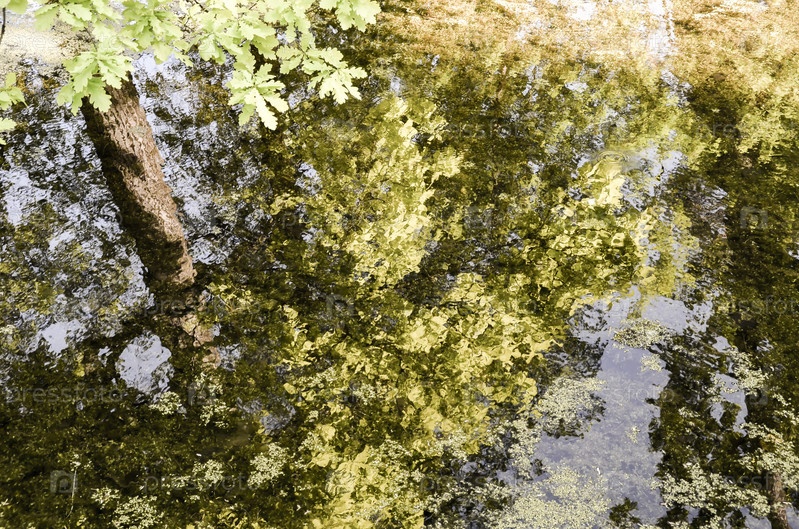 отражение листьев в оде