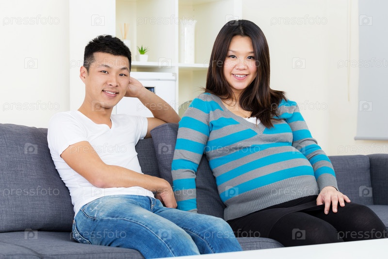 Беременная женщина и муж дома