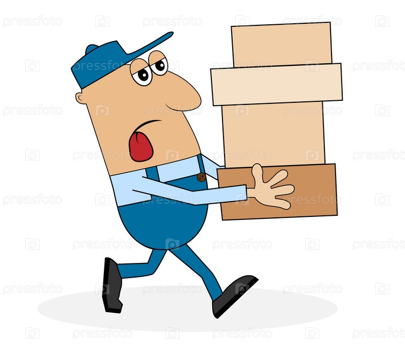 Уставший грузчик с коробками