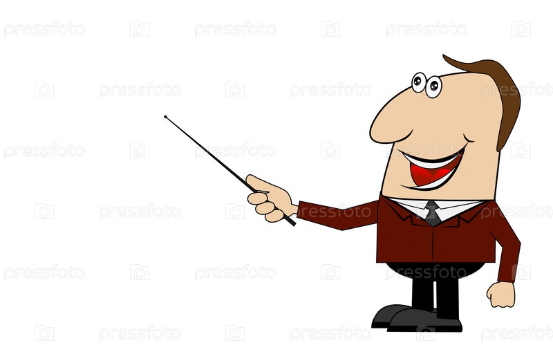 Веселый мужчина с указкой