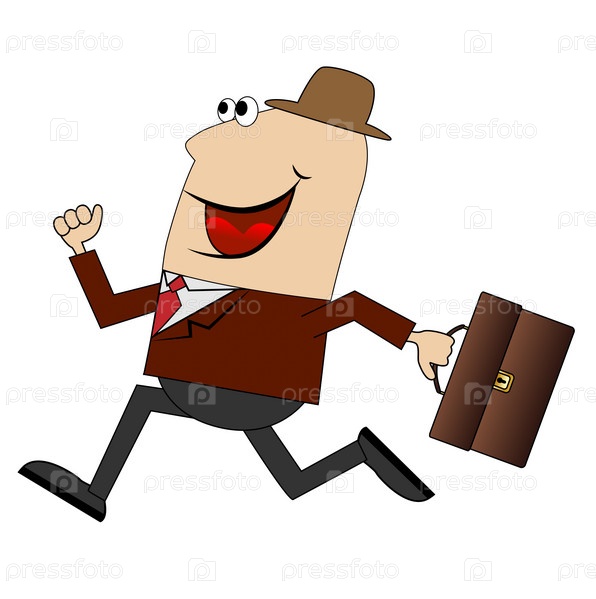 Веселый мужчина спешит на работу