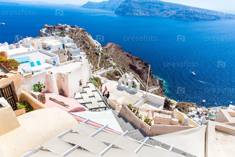 Вид на город Фира - остров Санторини, Крит, Греция