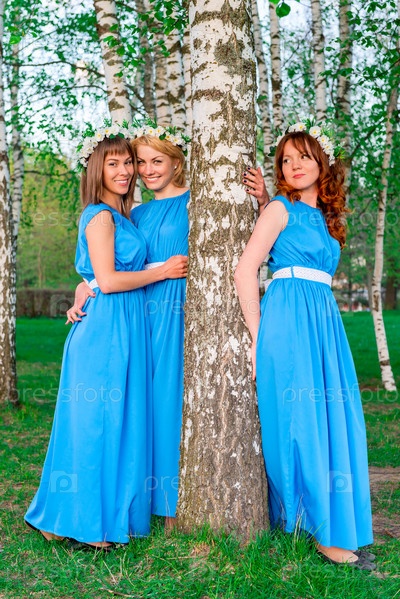 Три подруги возле березы