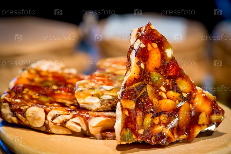 Традиционные вкусные восточные сладости с орехами крупным планом