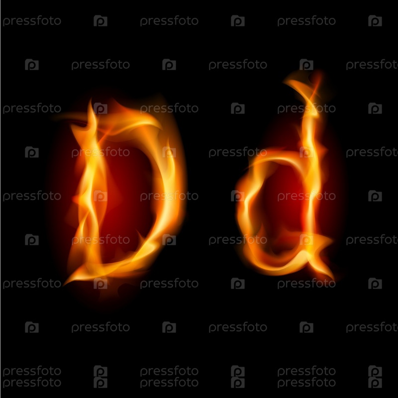 Огненная буква английского алфавита D на черном фоне