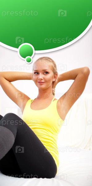 Портрет молодой девушки, делающей упражнения, с местом для текста