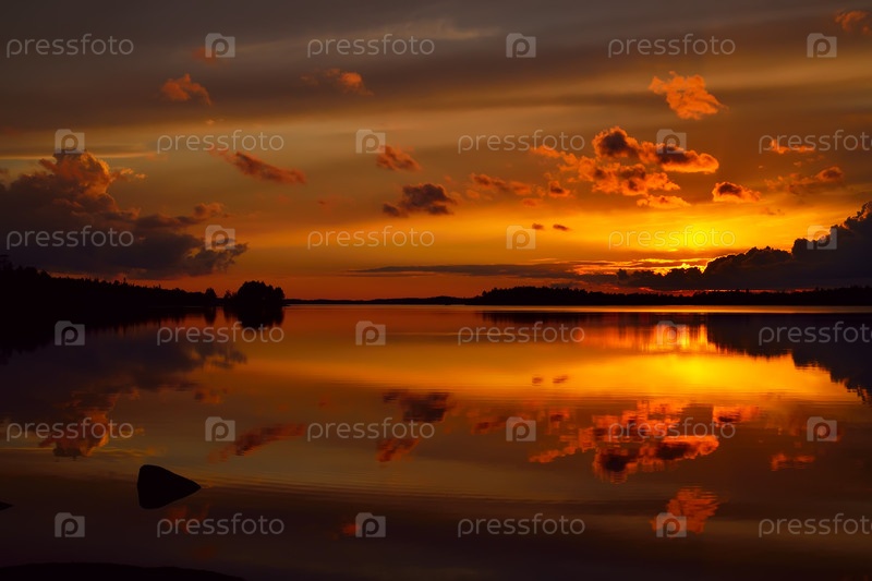 Огненный закат. Озеро Поньгома, Северная Карелия, Россия