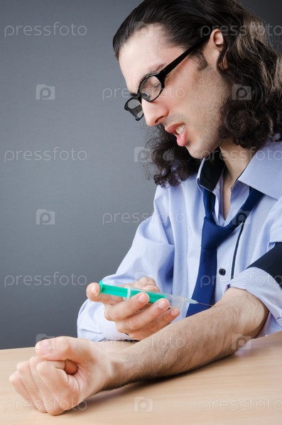 Молодой парень-наркоман, делающей себе инъекцию