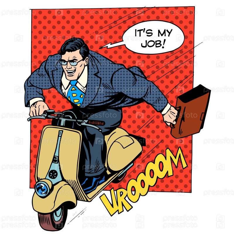 Бизнесмен едет на работу на скутере