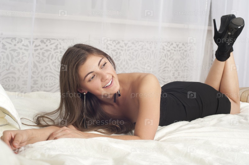 Счастливая девушка на кровати