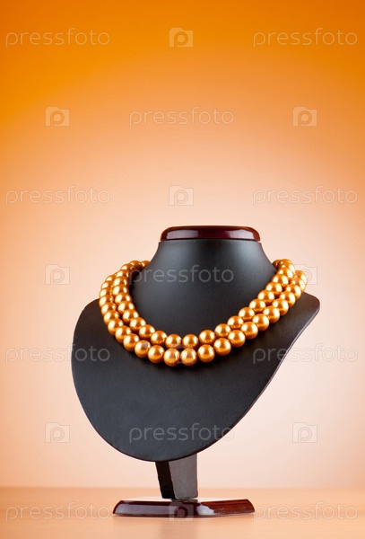 Жемчужное ожерелье на манекене на оранжевом фоне