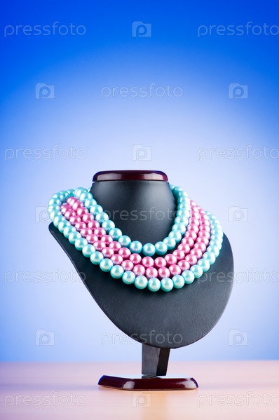 Жемчужное ожерелье на манекене на голубом фоне