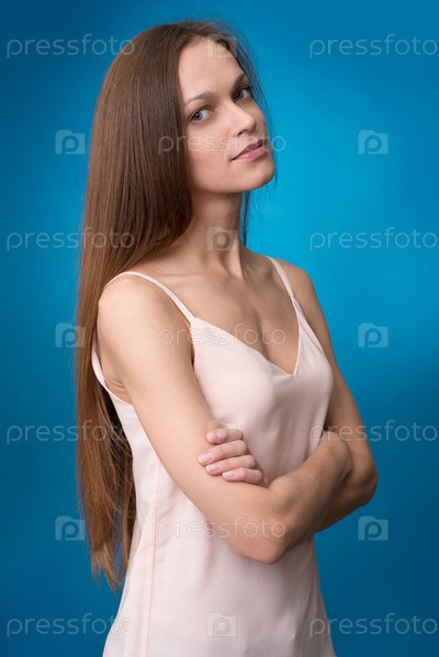 Красивая женщина на синем фоне