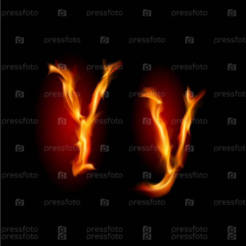 Огненный шрифт, буква Y на черном фоне