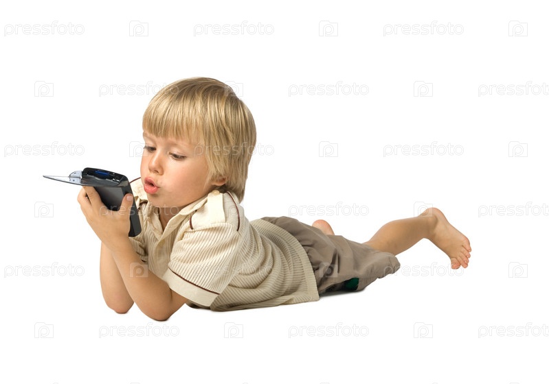 Маленький мальчик играет в приставку