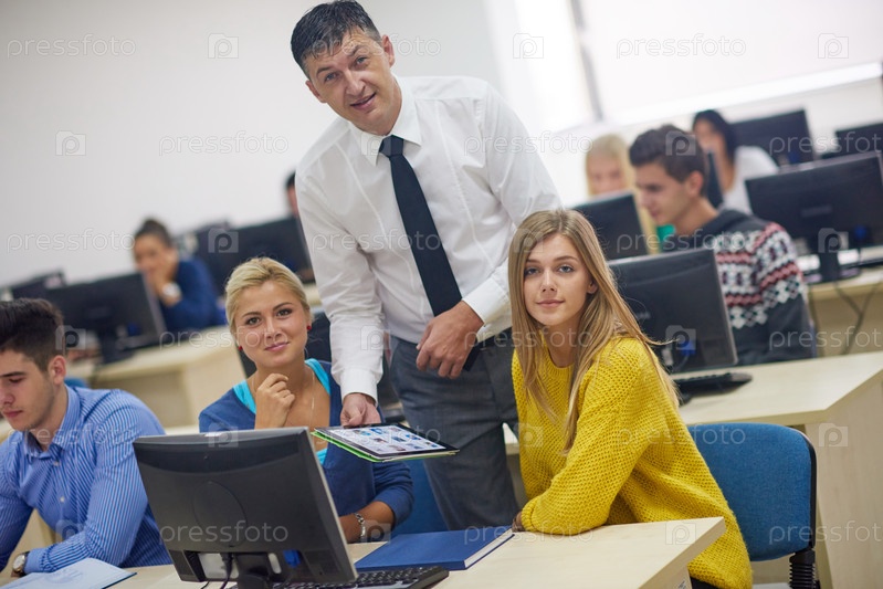 Студенты с учителем в компьютерной лаборатории иностранного