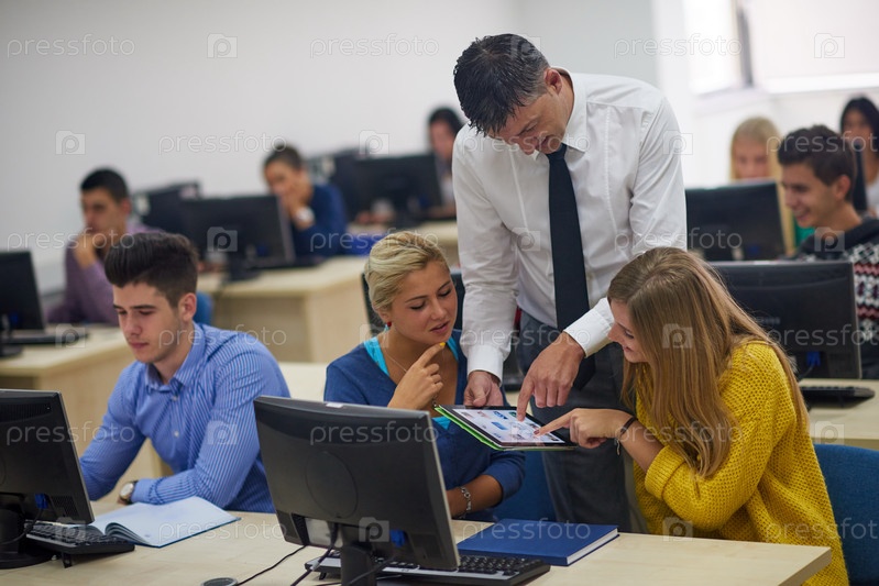 Студенты с учителем в компьютерной лаборатории иностранного