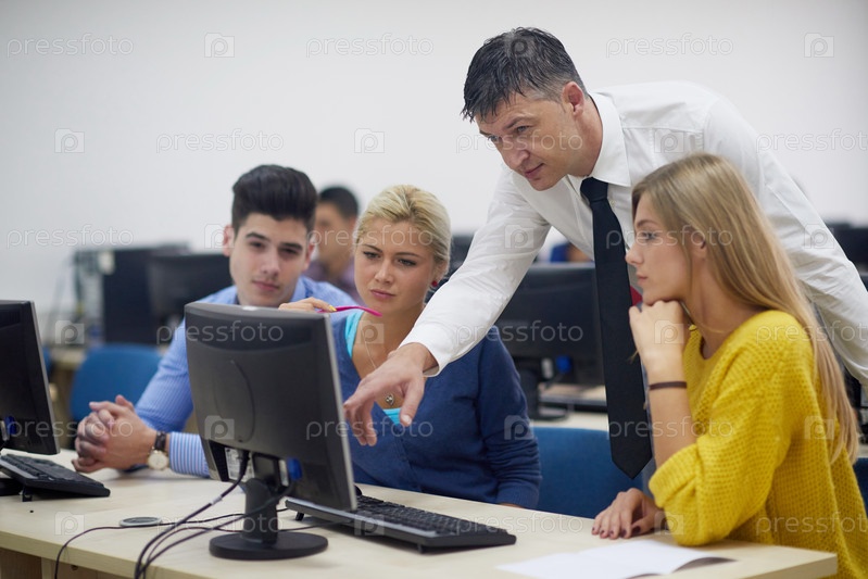Студенты с учителем в компьютерной лаборатории иностранного