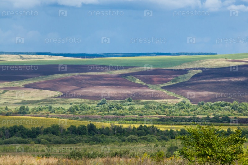 Просторный сельскохозяйственный пейзаж во время смены погоды