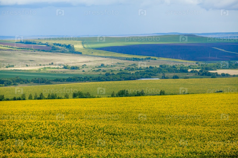 Просторный сельскохозяйственный пейзаж во время смены погоды