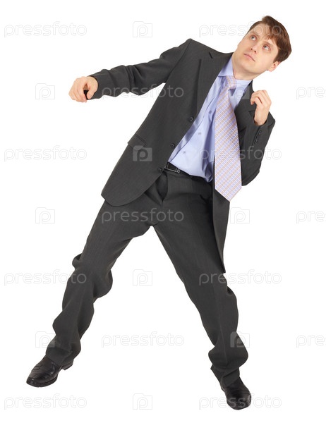 Молодой человек пинает белый фон