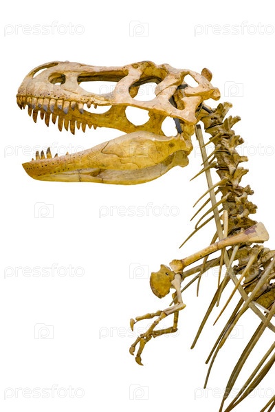 Фрагмент скелета тиранозавр Рекс на белом фоне изолированные