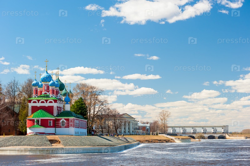 Красивые Православной церкви расположен на берегу реки в Рыбинске