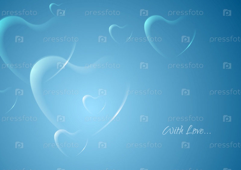 Блестящие сердечки на синем фоне
