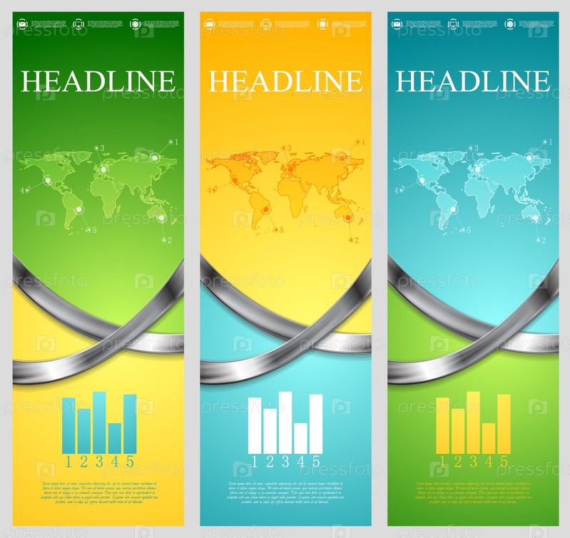 Яркий абстрактный вертикальные баннеры с металлическими волны
