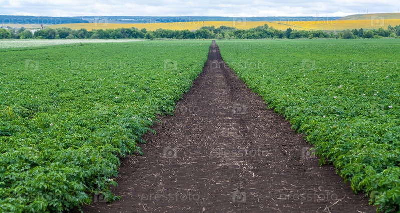 Цветущее картофельное поле в пасмурный день