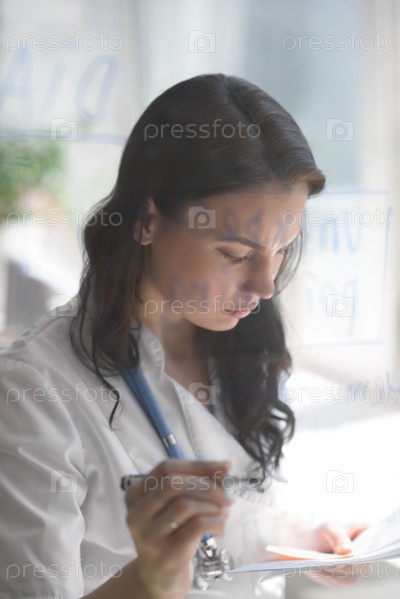 Женский врач работает