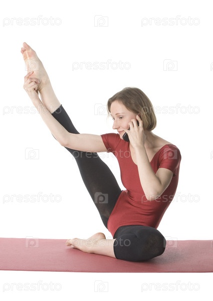 Девушка говорит по телефону во время растяжки