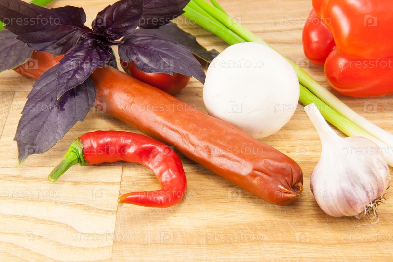 Охотничья колбаска и овощи